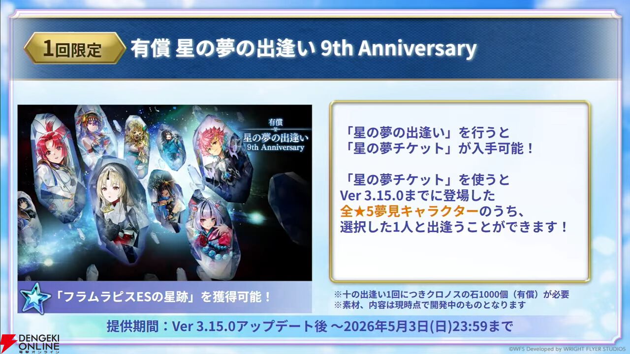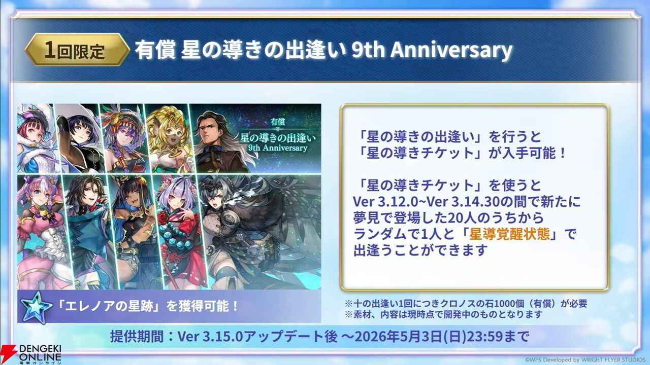 9周年を記念したクロノスの石のセールも行われるので、石が足りないという方は検討してみてはいかがでしょうか。