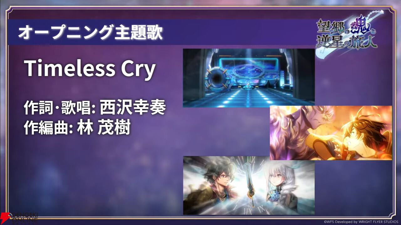 PVでも流れていたオープニング主題歌は、西沢幸奏さんが歌唱する『Timeless Cry』。エンディング主題歌は『アナザーエデン』初参加となる、なゆごろうさんが歌唱する『コンパス』です。