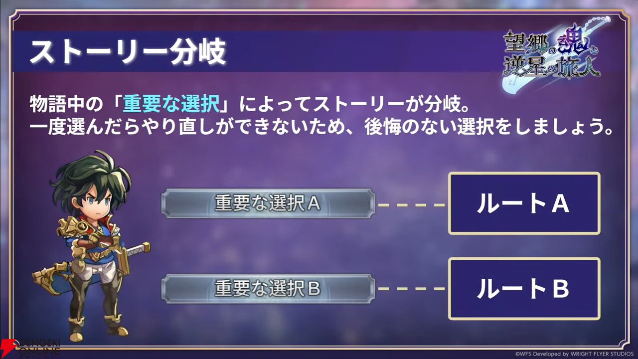 ストーリーはプレイヤーの選択によって分岐。今回は一度選ぶとやり直しができないため、慎重に決めることが重要になりそうです。