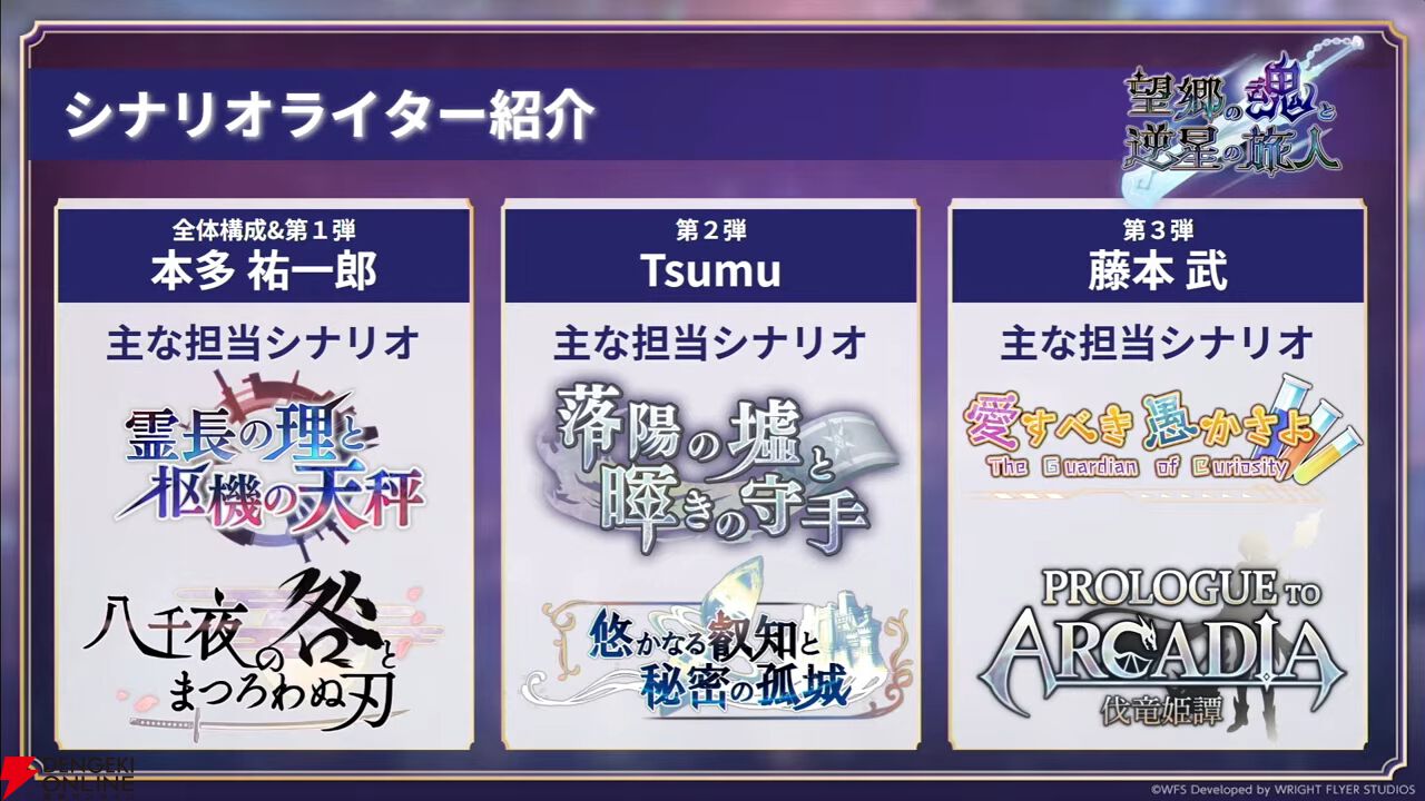 第3弾までのシナリオ担当は以下の通り。