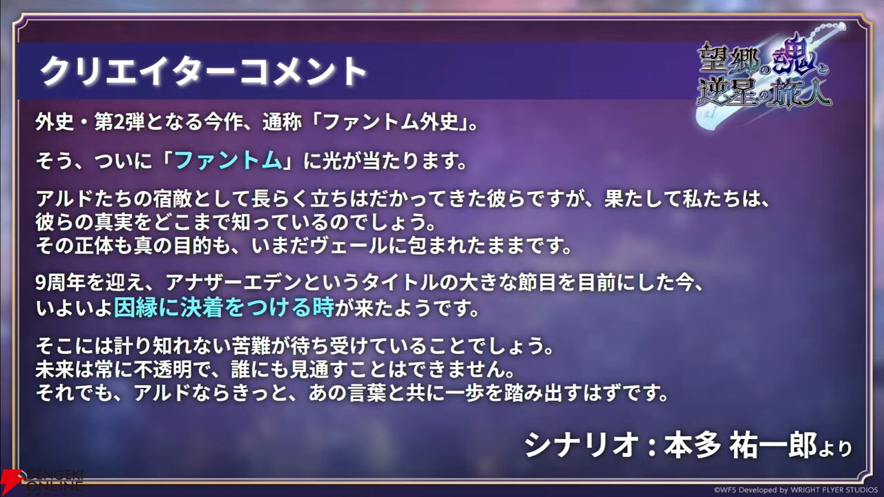 タイトルは“望郷の魂と逆星の旅人”。全5弾の連載コンテンツで、第5弾配信後の外伝で完結を迎えます。