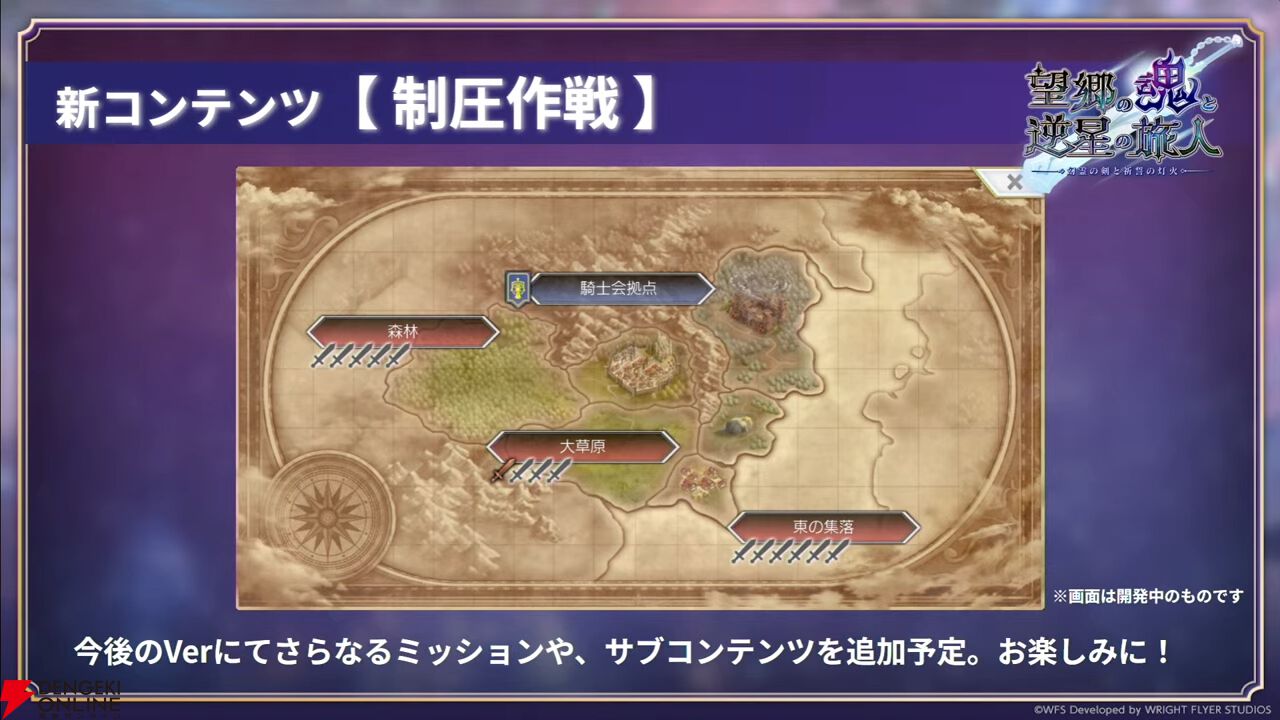 第1弾では新コンテンツとして“制圧作戦”が登場。ミニクエストを受けると開放されるミッションをすべて達成することで制圧戦に参加可能。クリアするとフィールド制圧となります。