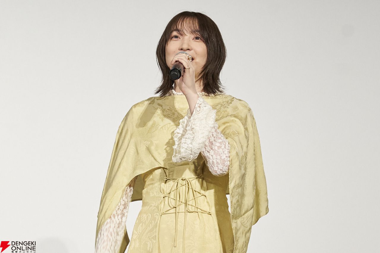 また、第1章との変化についても言及。「第1章の時は浮世離れした感覚があったので、もうちょっと周りの人と目線が合ってきた感じもしますね。最後のこの黄色いワンピースを着て再会したシーンとかも、すごく血肉がある感じがして、ギギに。温度感が1章の時と違う感じがして、アフレコから時間が経ってから見たからこそ、ああいう風に感じた部分だったのかなと思います」と振り返りました。