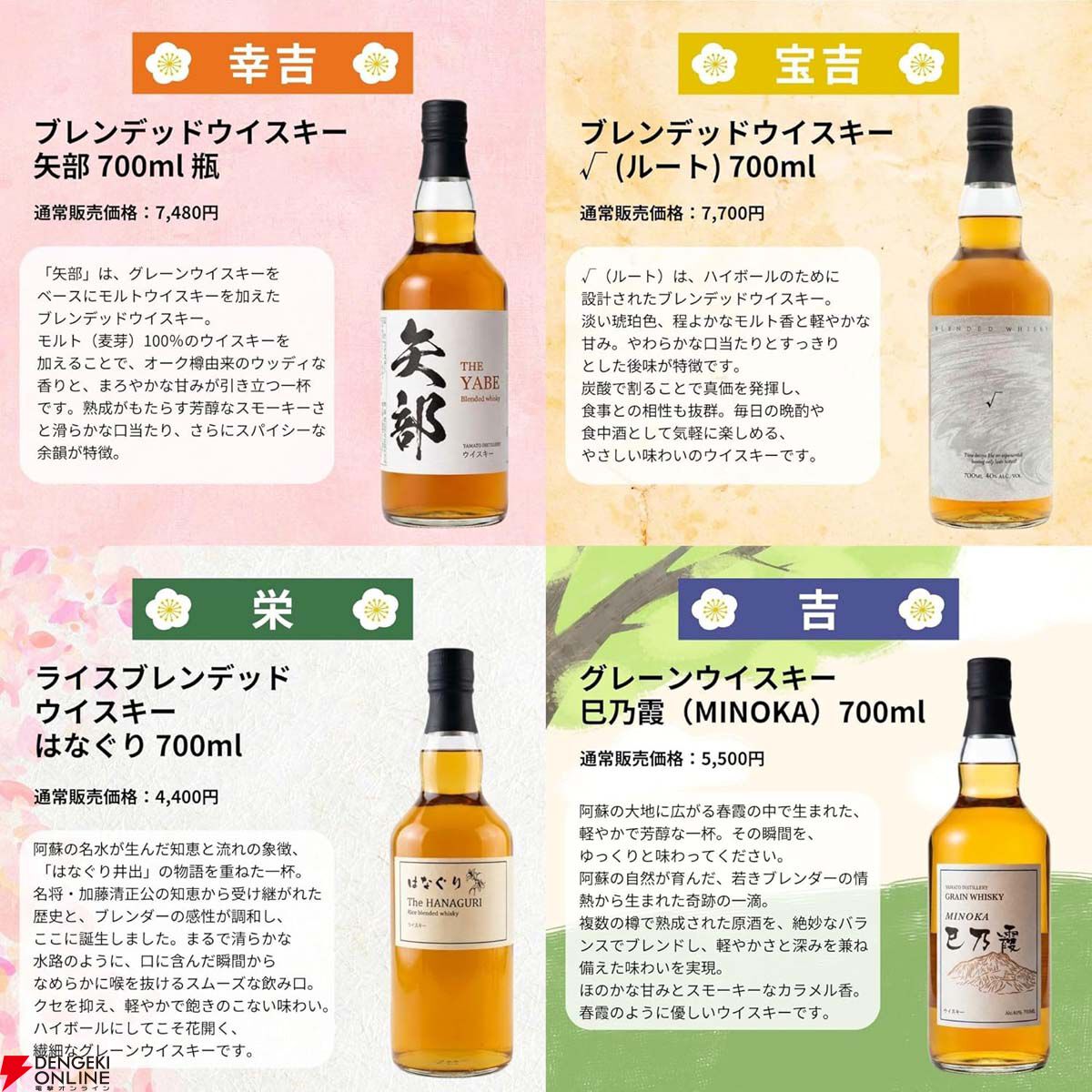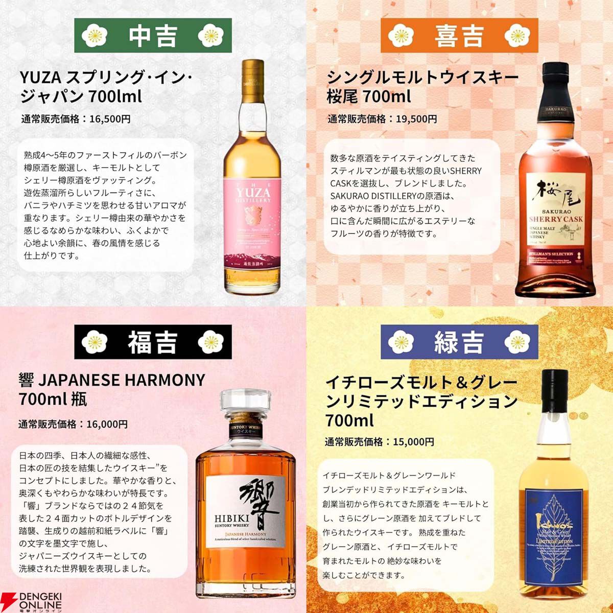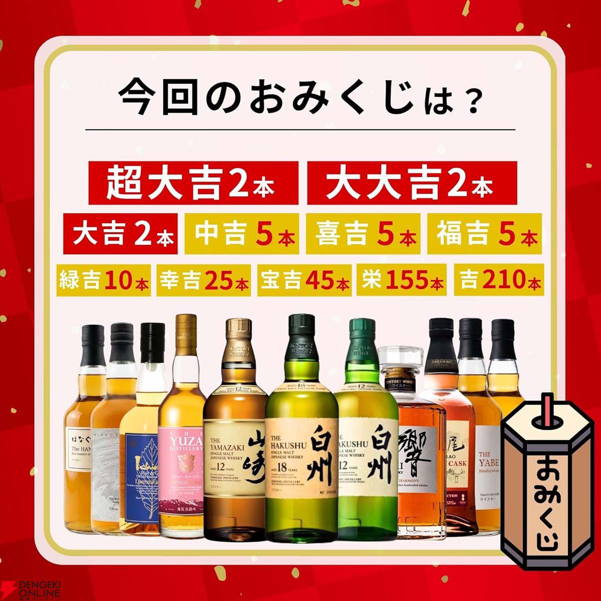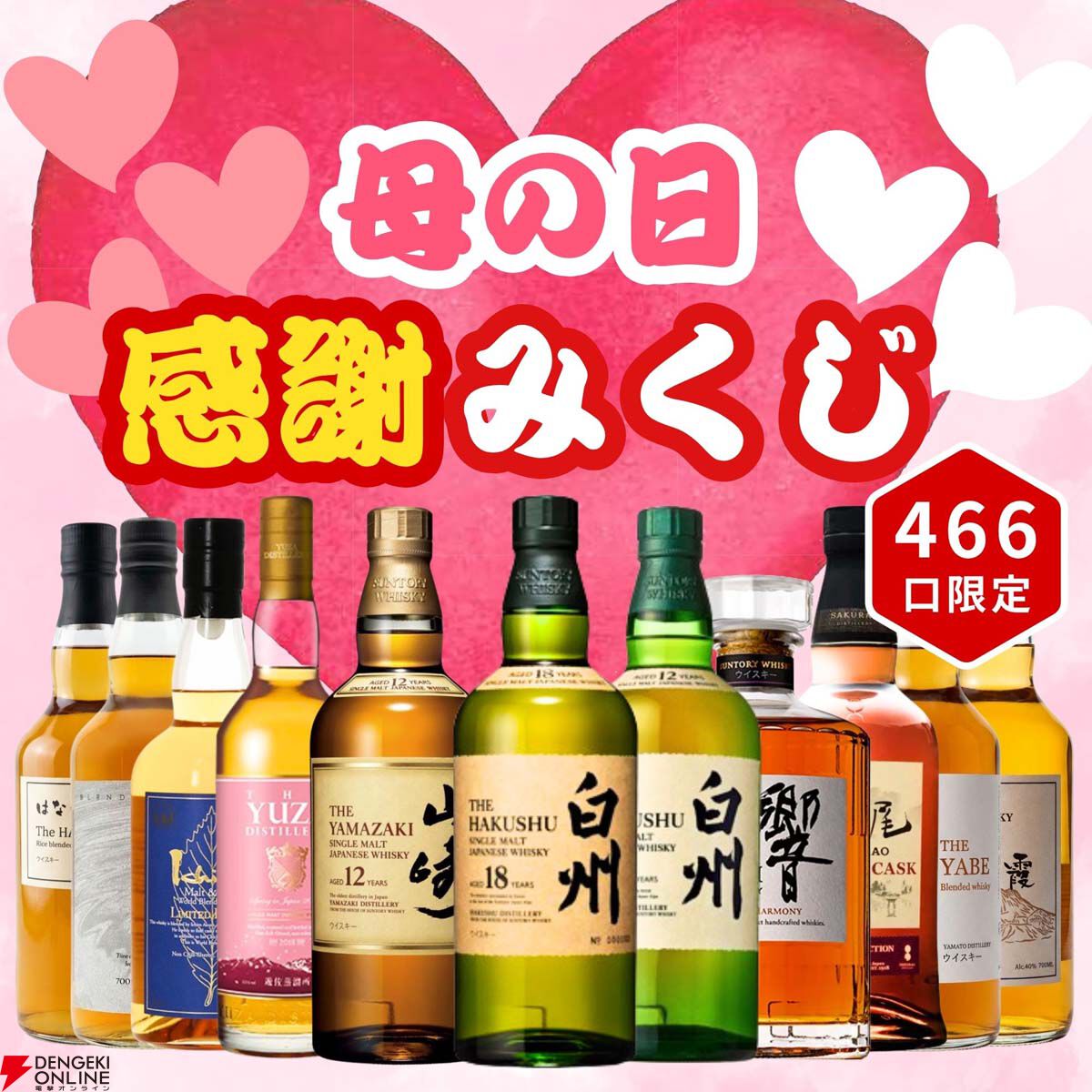 『母の日 感謝ウイスキーみくじ』(466口)白州18年、山崎12年、白州12年、スプリング・イン・ジャパンなどが当たる