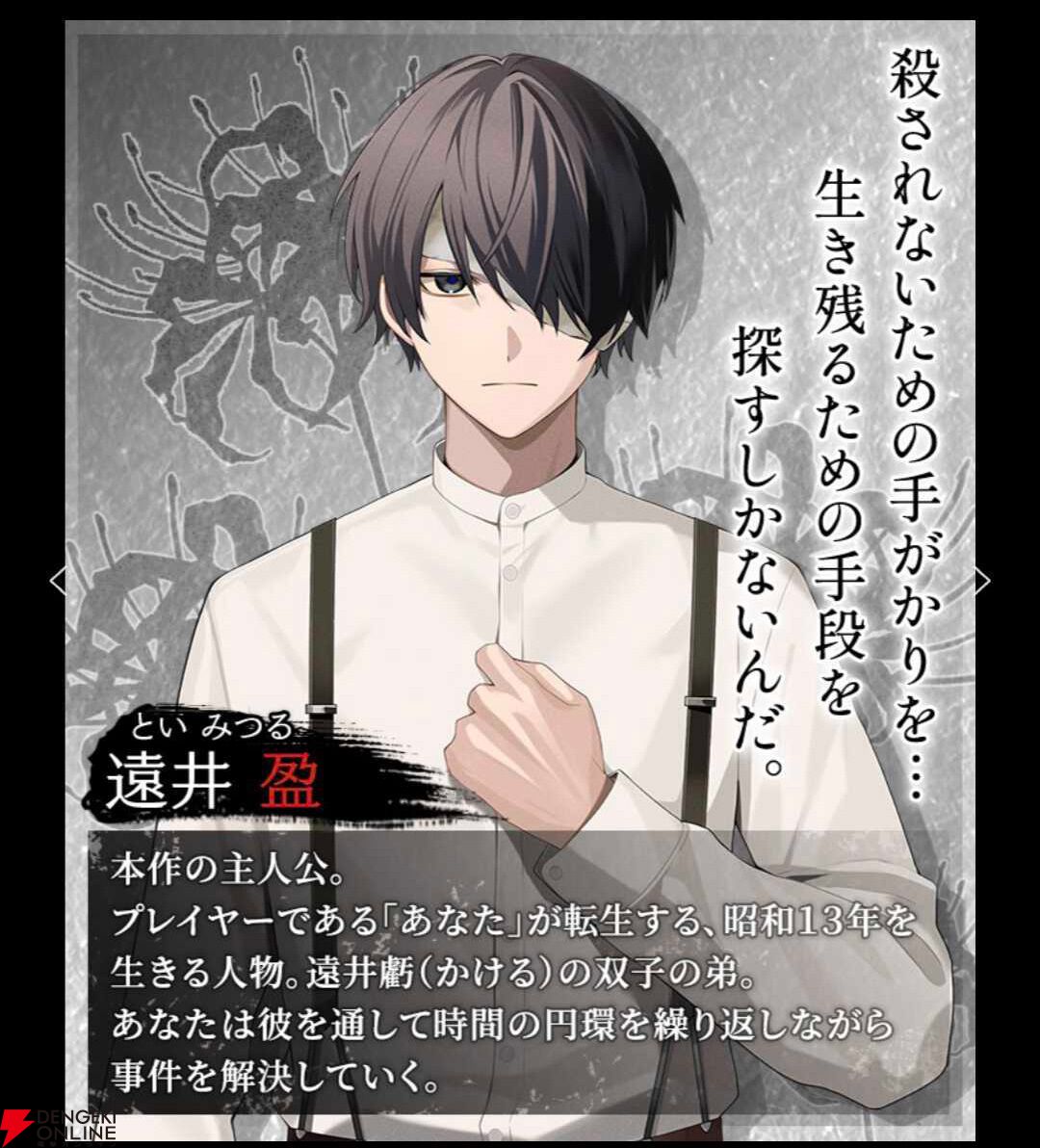 『虧月の夜』は、現代の高校生が大量殺人事件の“当事者”として、鬱屈とした空気感に閉ざされた昭和初期の農村に転生。事件に巻き込まれ死亡することで同じ時間を繰り返しながら、正しい選択を見つけ生き残りを目指すタイムリープサバイバルホラーアドベンチャーです。