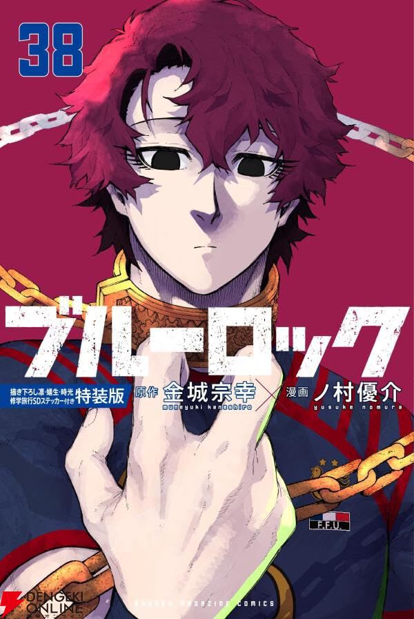 漫画『ブルーロック』最新38巻描き下ろし凛・蟻生・時光修学旅行SDステッカー付き特装版が4月16日に発売されます。