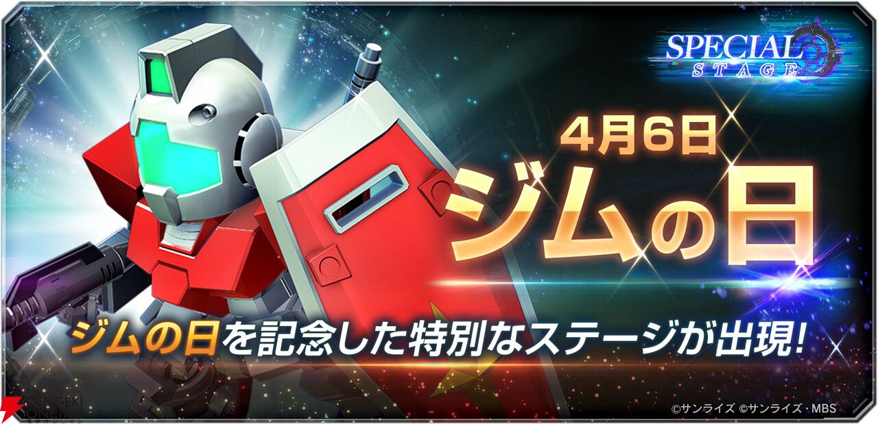 バンダイナムコエンターテインメントから配信中のiOS/Android向けアプリ『SDガンダム ジージェネレーション エターナル』にて、4月6日は“ジムの日”として、ジムにフィーチャーした期間限定スペシャルステージが開催中です。