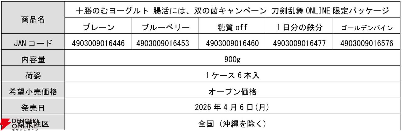 あわせて、応募者全員に『刀剣乱舞ONLINE』のゲーム内で使えるコラボオリジナルの便利道具“十勝のむヨーグルト プレーン 2026(コラボ)”と“十勝のむヨーグルト ブルーベリー 2026(コラボ)”をプレゼントするキャンペーンも実施中です。