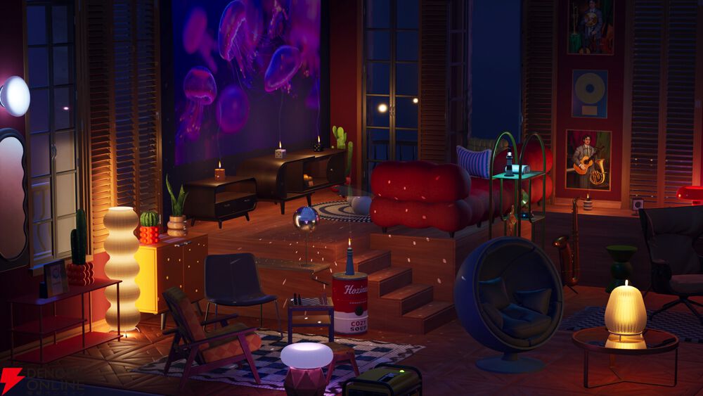 ロウソクを灯したり、本棚に本を並べたり、壁に似顔絵を描いたり、プロジェクターをつけたりしてみましょう。