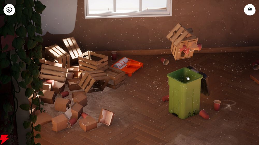 散らかったゴミを片付け、積もった埃を掃除する。ゲームの中でお掃除することによりストレス発散ができます。