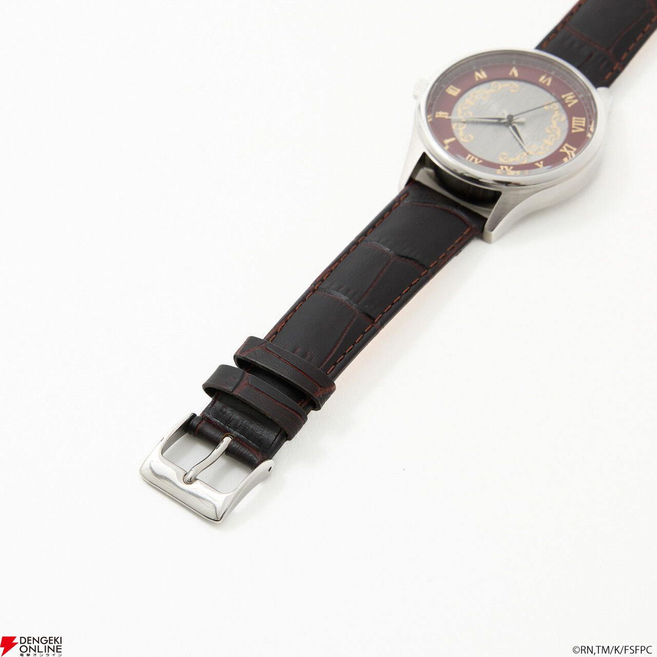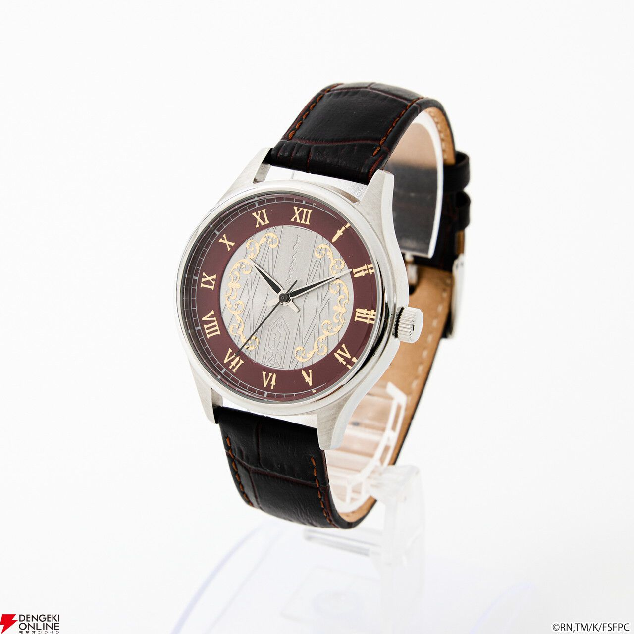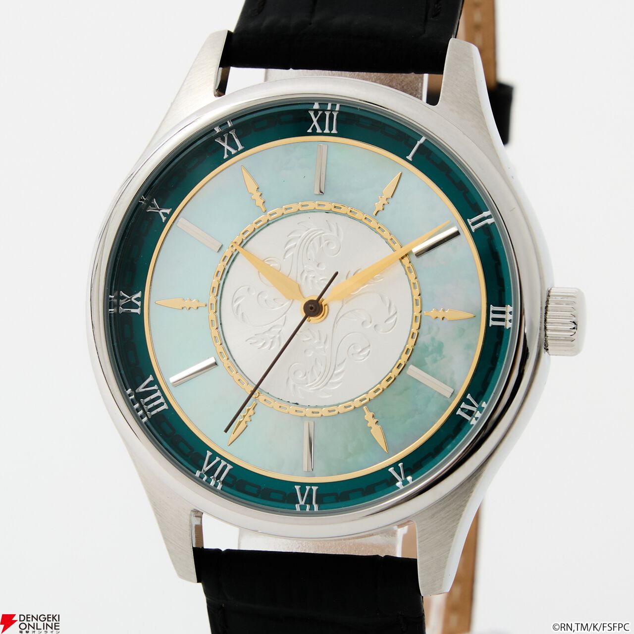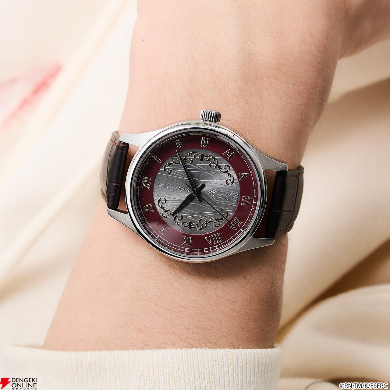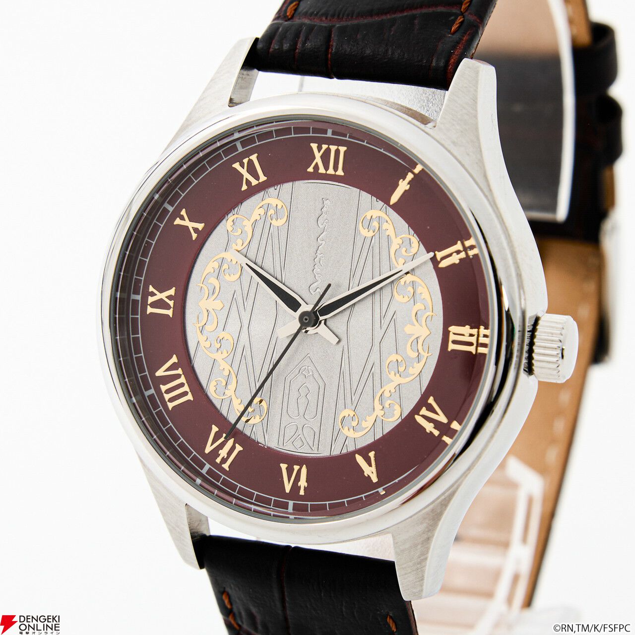 腕時計の盤面中央には、「王の財宝<ゲート・オブ・バビロン>」をイメージしたエッチングを施し、インデックスや金属パーツで、宝具が放たれる様を演出。