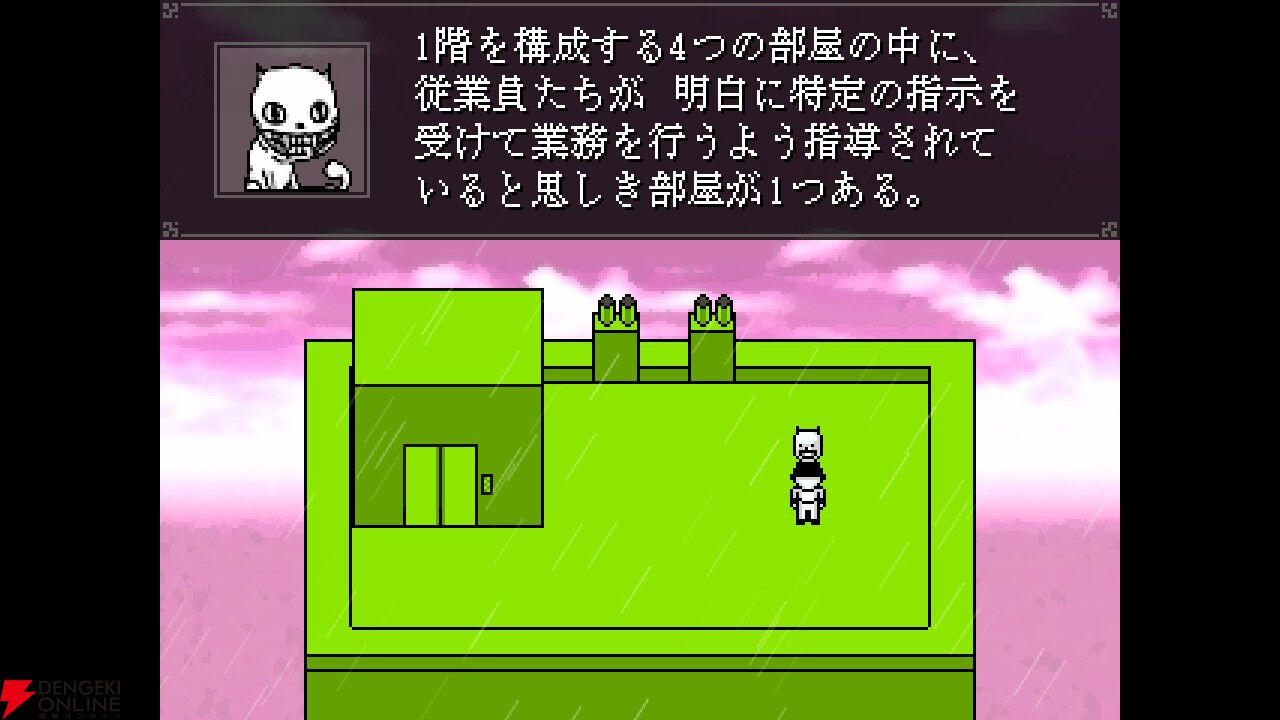 冒頭から飛び交う断片的な情報の嵐は、刺激的で想像力を掻き立てられますが、明確な説明は一切ありません。主人公や登場人物たちのセリフから、物語を自分で想像していくしかないのです。しかも、一部のキャラクターは主人公の“バッター”を通り越して“プレイヤー”に話しかけてくることもあり、不安や混乱は増していくばかり。