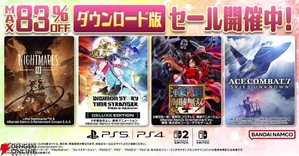 バンダイナムコエンターテインメントは、ダウンロード版ゲームをお得に購入可能なセールを開催します。