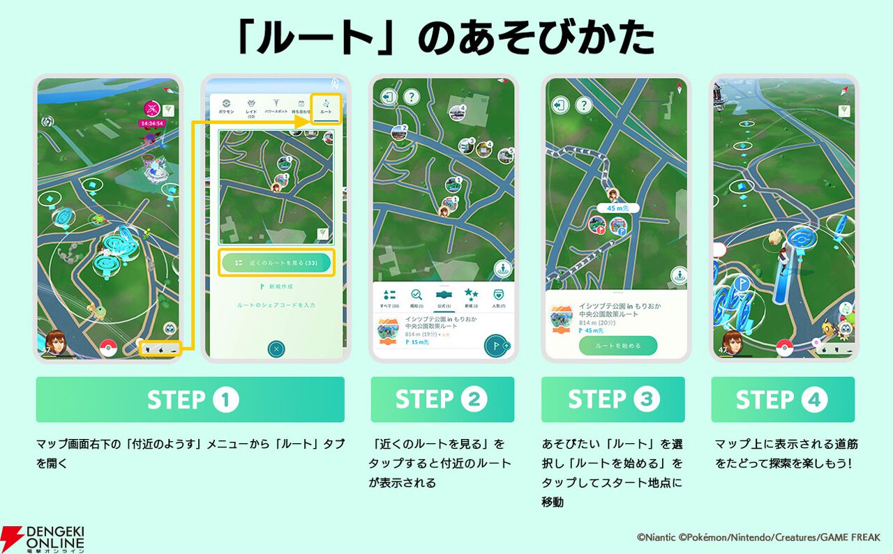 3.遊びたい“ルート”を選択し、“ルートを始める”をタップしてスタート地点に移動します。