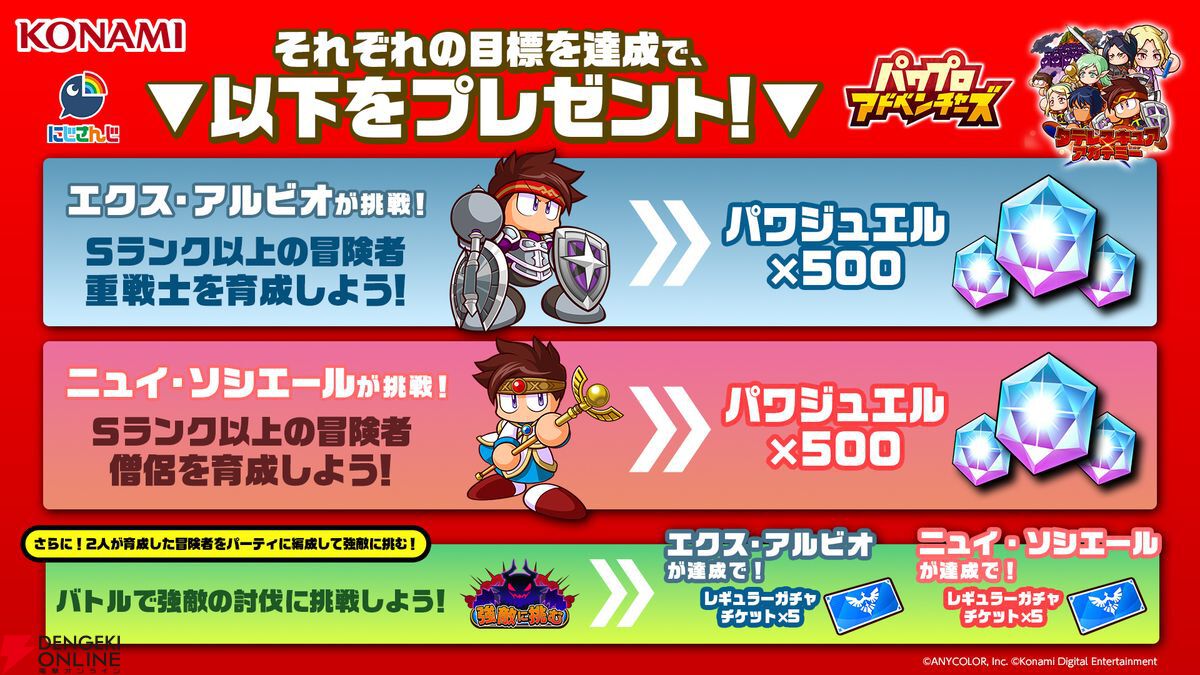 それぞれ目標を達成すると、『パワアド』を遊んでいるみなさまへ報酬をプレゼント!