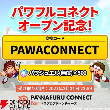 さらに、「パワフルコネクト」(以下、「パワコネ」)のオープンを記念して、「パワジュエル(無償)×500」がもらえる交換コードも公開中です。