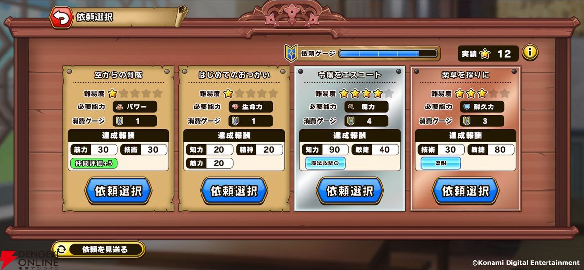 アカデミーに届く依頼に仲間とともに挑戦!求められる基本能力は依頼ごとによって様々なので、依頼に適した仲間を選択し、成功や大成功を目指しましょう!