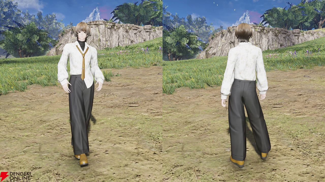 ACスクラッチ“スタイリッシュアベニュー’26”では、スタイリッシュな現代風の衣装がラインナップ。“カーディンオーバー”は着崩したカーディガンが特徴的。同一のファッションは、80年代後半に女性の間で流行ったこともあって中性的なイメージです。