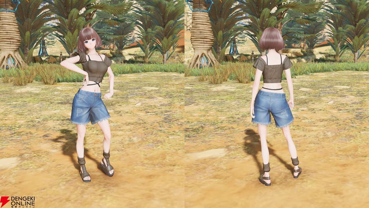 “カジュアルオフショル”は、シンプルなオフショルダーのベースウェアです。『NGS』では、デニムのショートパンツは希少なので、それを生かしたコーディネートを考えたいところ。