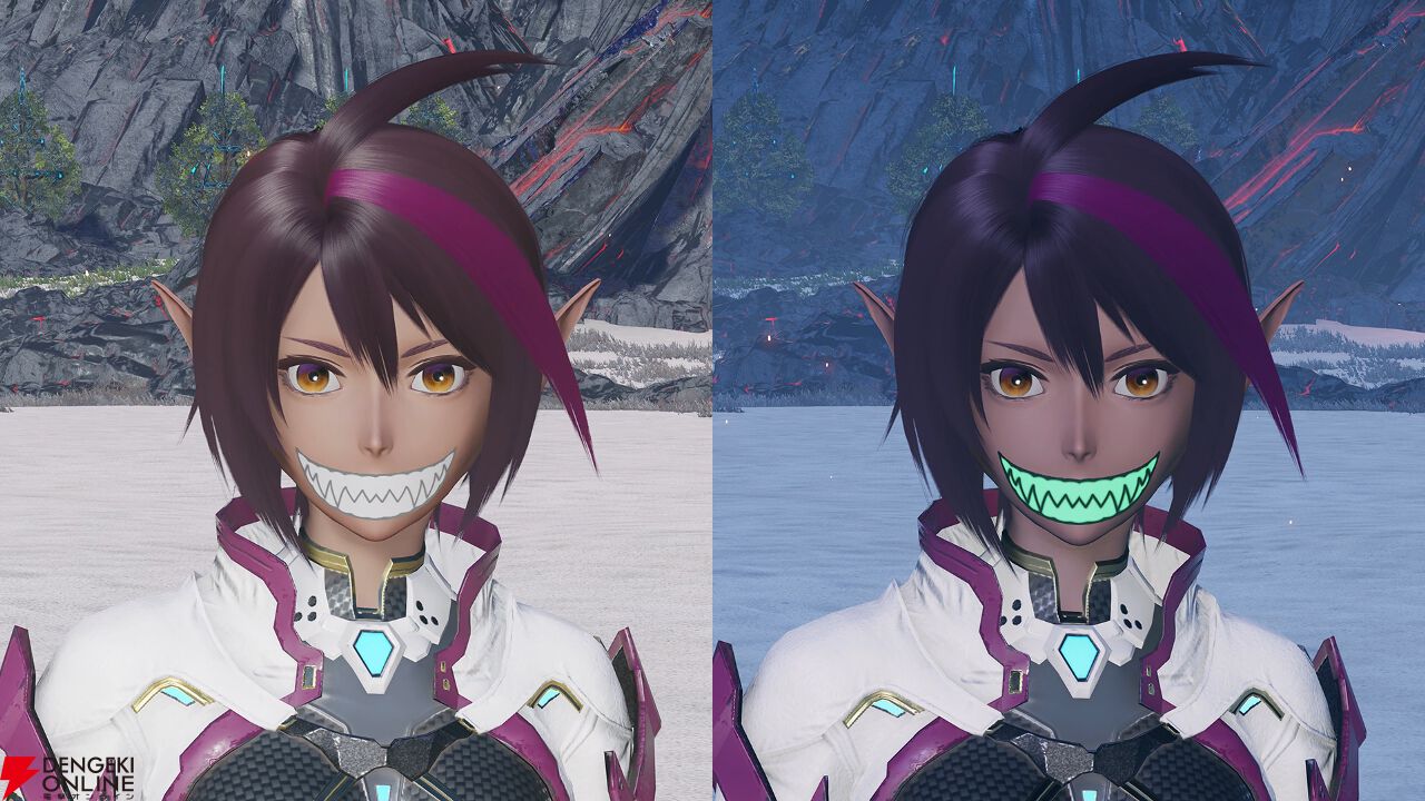 ギザギザの歯をモチーフにしたマスク風アクセサリーです。全体が発光したバージョンも同時配信します。