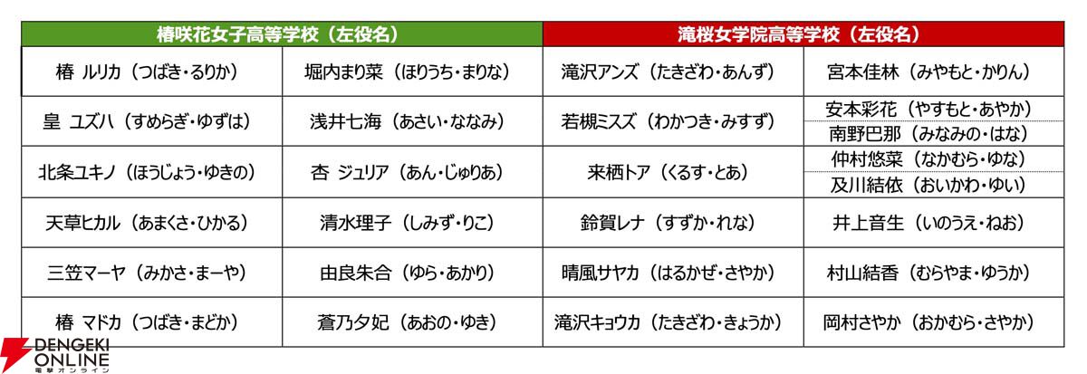 メインキャスト18名を一挙に解禁。全国レベルの学力と伝統を誇る兵庫の名門進学校・椿咲花(つばきさくはな)女子高校の理事長の娘・椿 ルリカ役を堀内まり菜、芸能コースアイドル部を擁する大阪の人気有名高校・滝桜(たきざくら)女学院の理事長の娘・滝沢アンズ役を、宮本佳林が務めます。