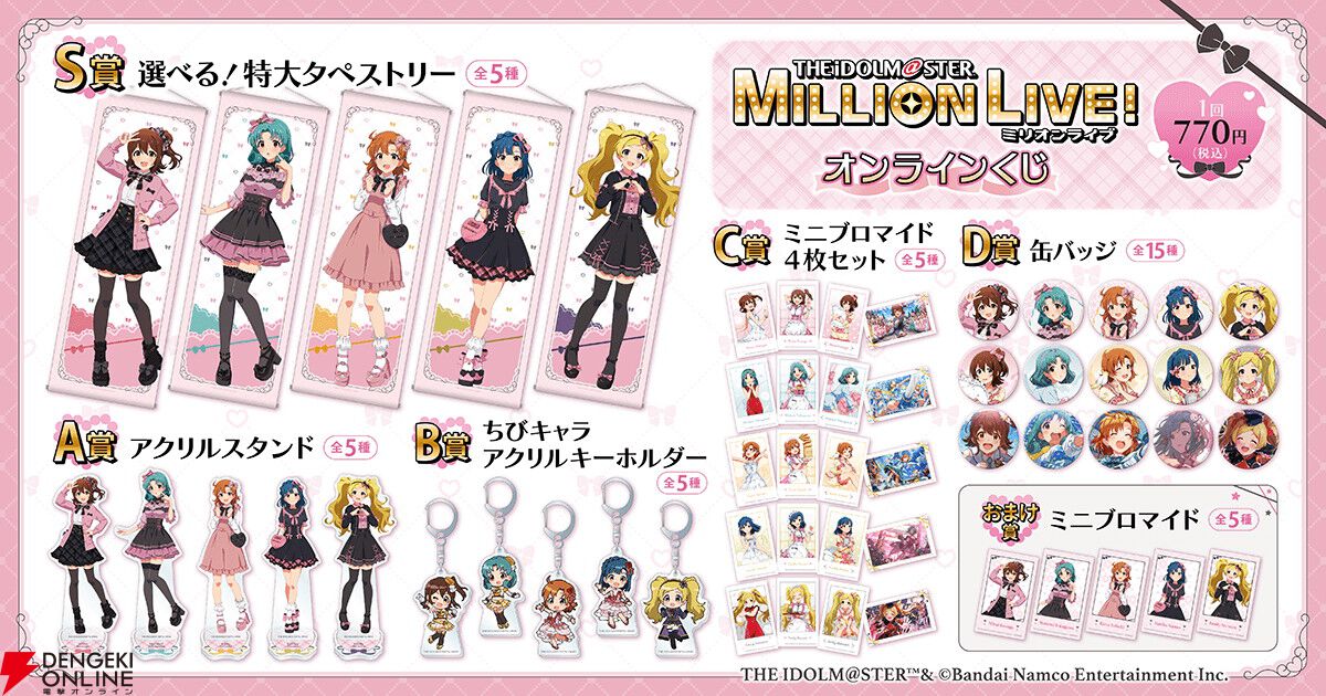 オンラインくじサービス"くじ引き堂”において、『アイドルマスター ミリオンライブ!』のグッズが入手できる<アイドルマスター ミリオンライブ! オンラインくじ>の販売を開始しました。
