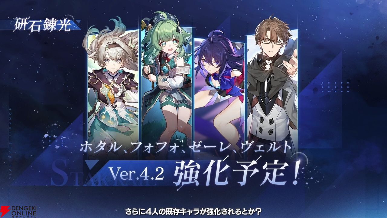 ホタル、フォフォ、ゼーレ、ヴェルトが、Ver4.2で強化されます。