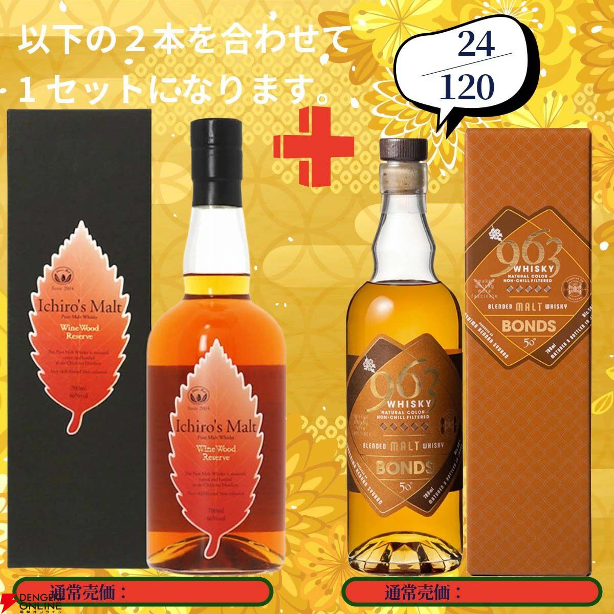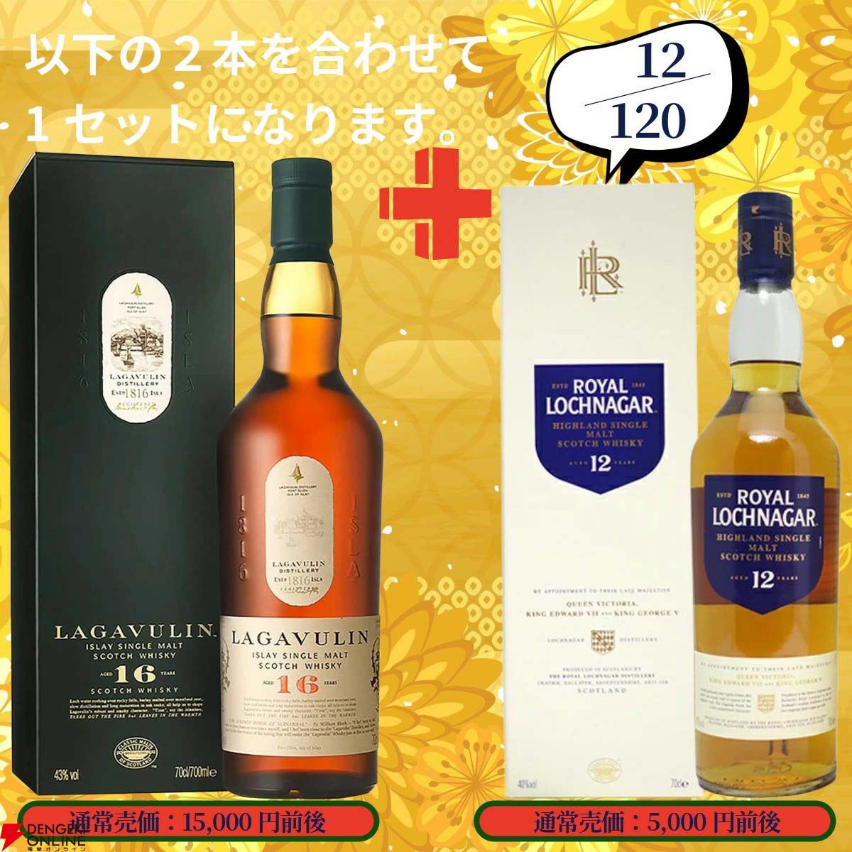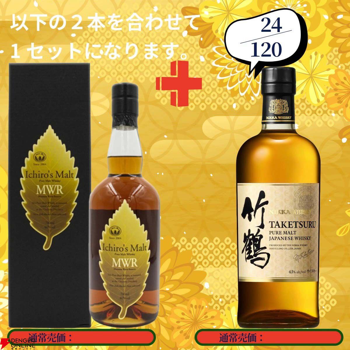 イチローズモルトMWR+竹鶴のセットは16,000円、ラガヴ―リン16年+ロイヤル ロッホナガ―12年のセットで14,000円ほどの銘柄になります。