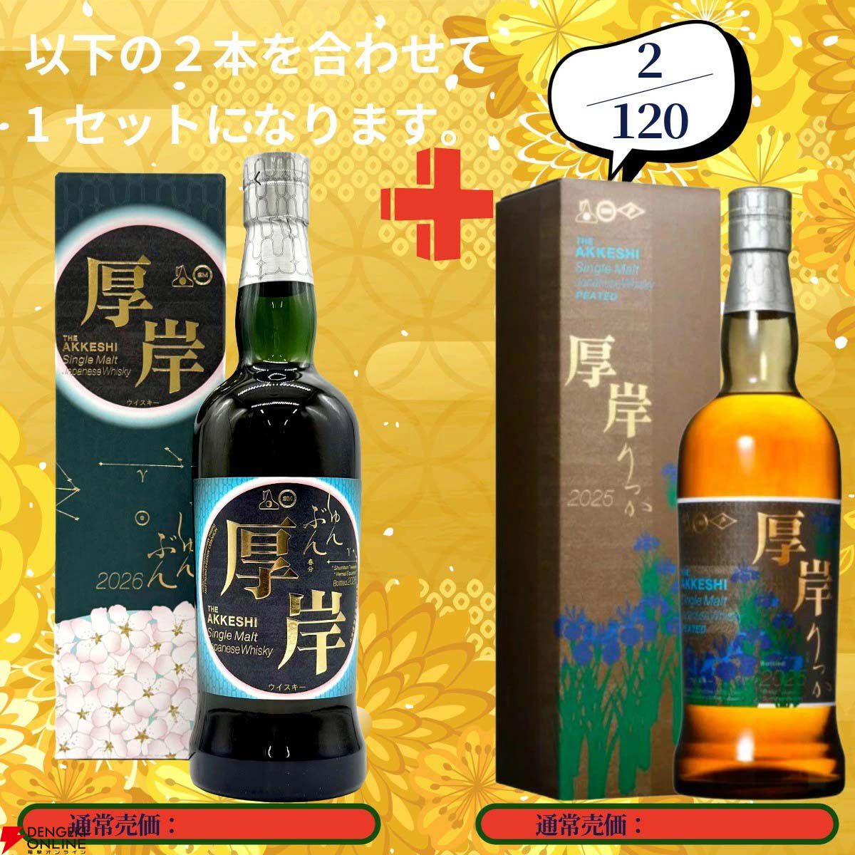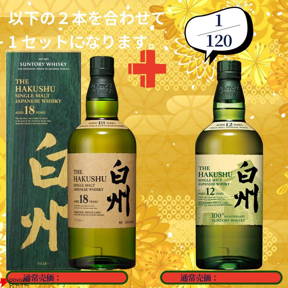 ウイスキーくじ第145弾(120口限定)山崎18年+山崎12年、白州18年+白州12年、厚岸 春分+立夏のセットなどが当たる