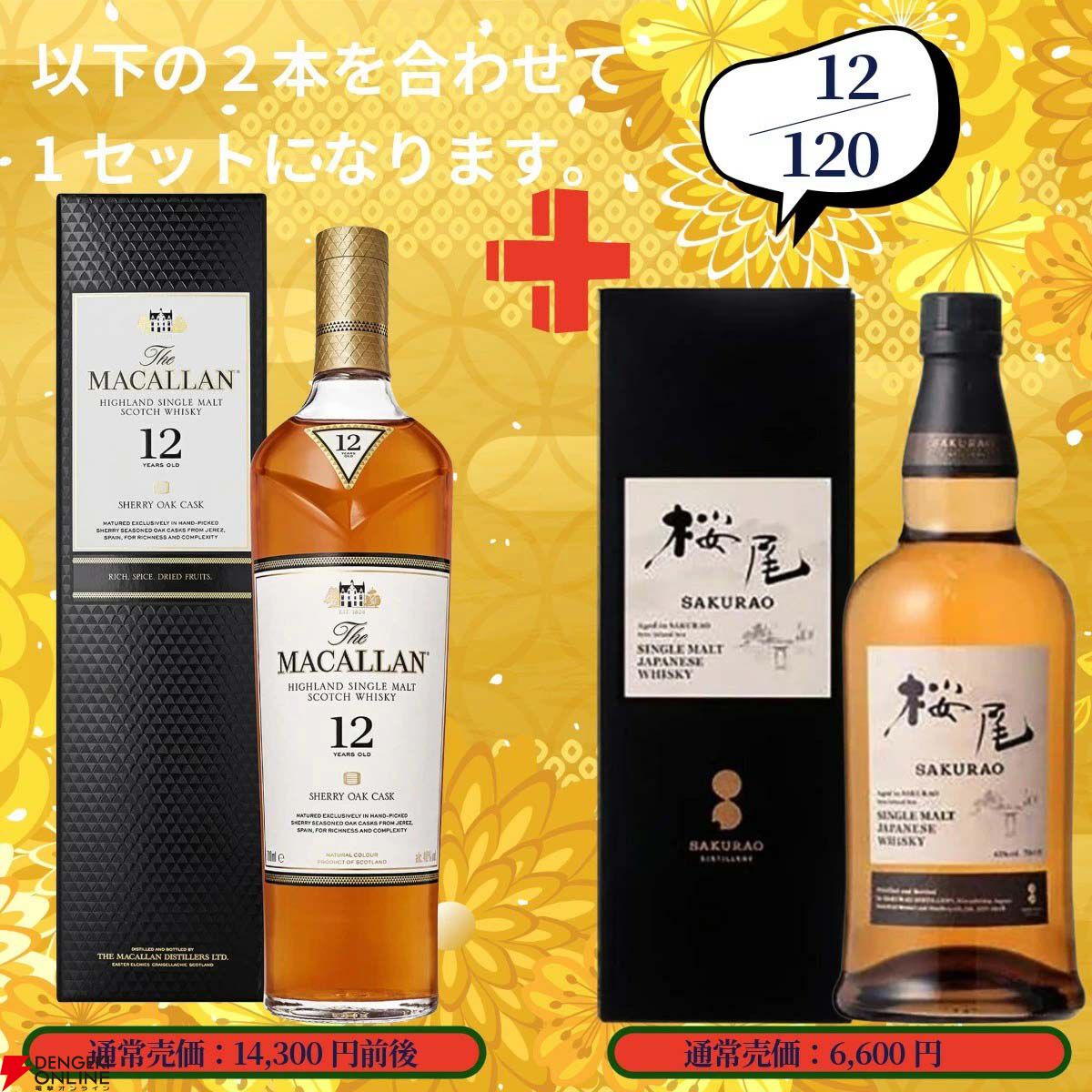 ハズれはそれぞれ安い場合でイチローズモルトWWR+963ボンズのセットが19,000円、マッカラン12年シェリーオーク+桜尾シングルモルトのセットは18,000円、桜尾シェリーカスク+フロムザバレルのセットが17,000円。
