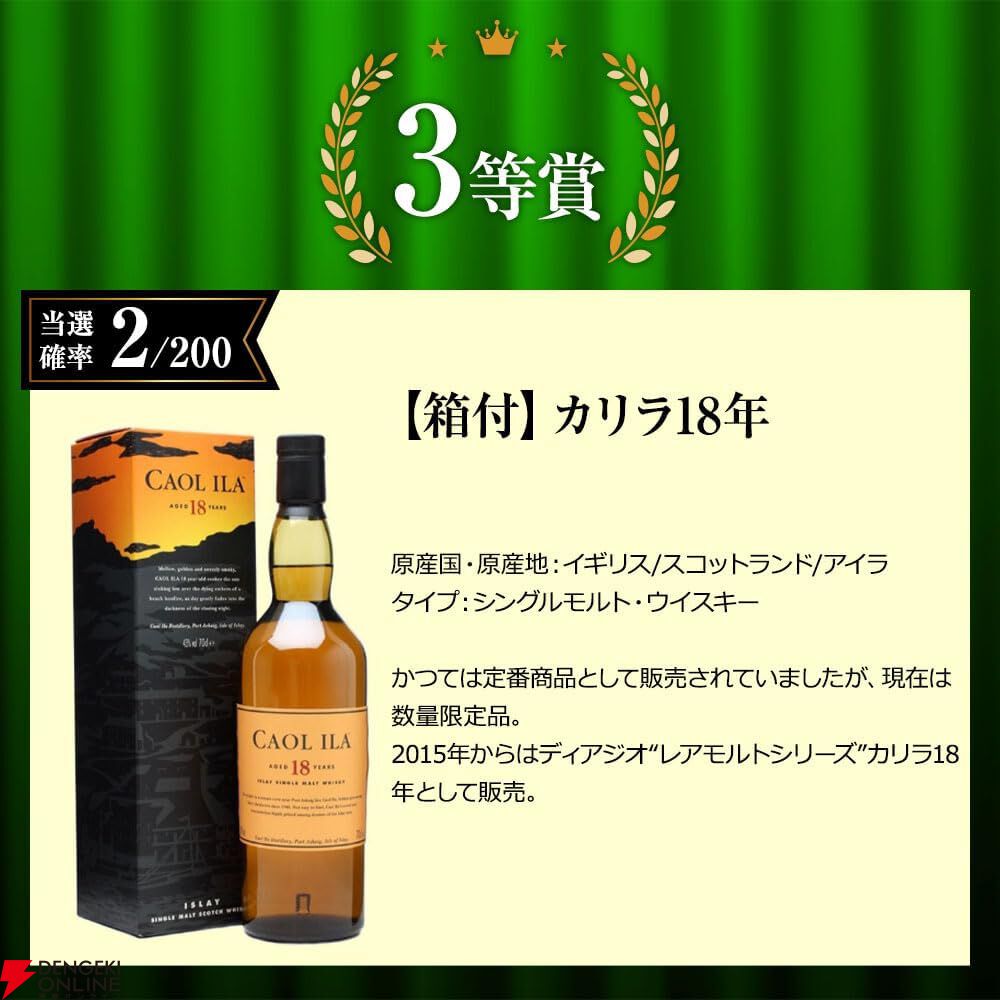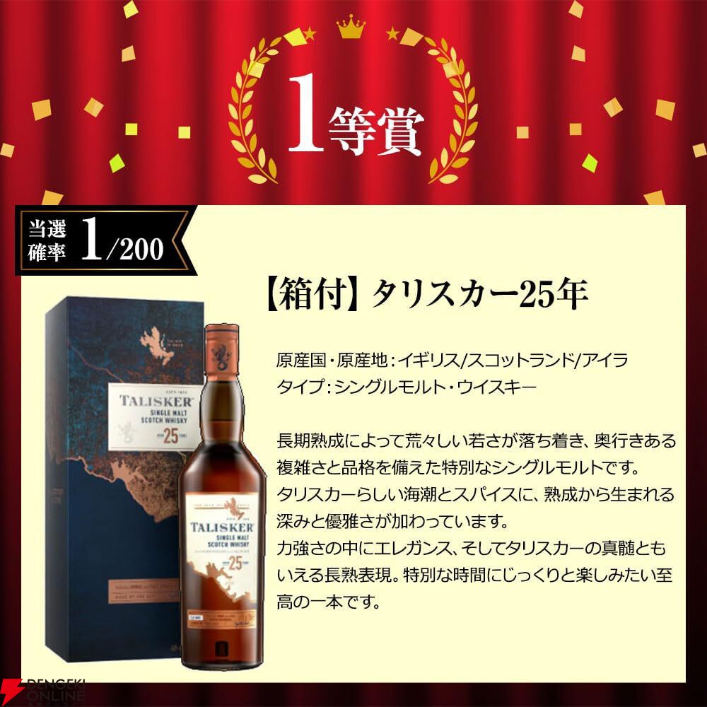 『高級ウイスキーくじ』第2弾(200口)タリスカー25年、マッカラン18年ダブルカスク、カリラ18年などが当たる