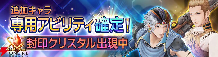 この封印クリスタルからは、フリオニールとバルフレアの専用SR以上のアビリティが確定で入手できるとのこと。専用Rアビリティはキャラクター獲得と同時に手に入るので、専用アビリティ一式をそろえやすくなります。