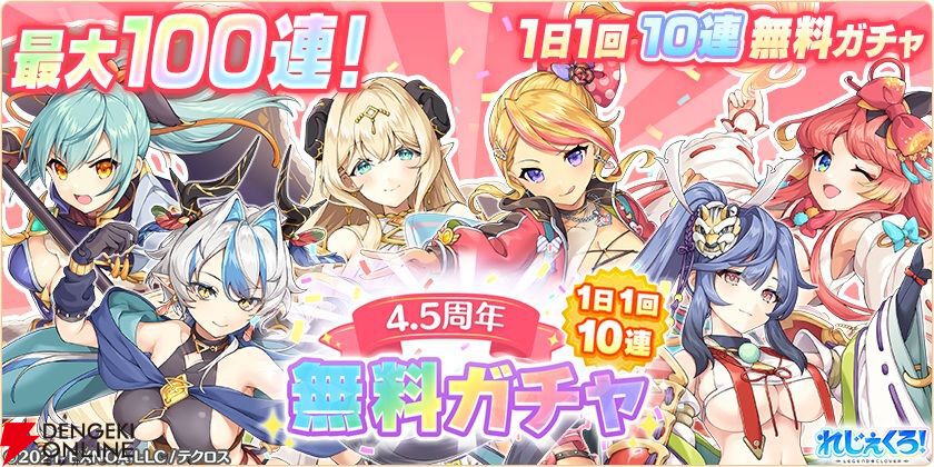 本日より最大100連分引くことができる、4.5周年 1日1回10連無料ガチャを開催します!
