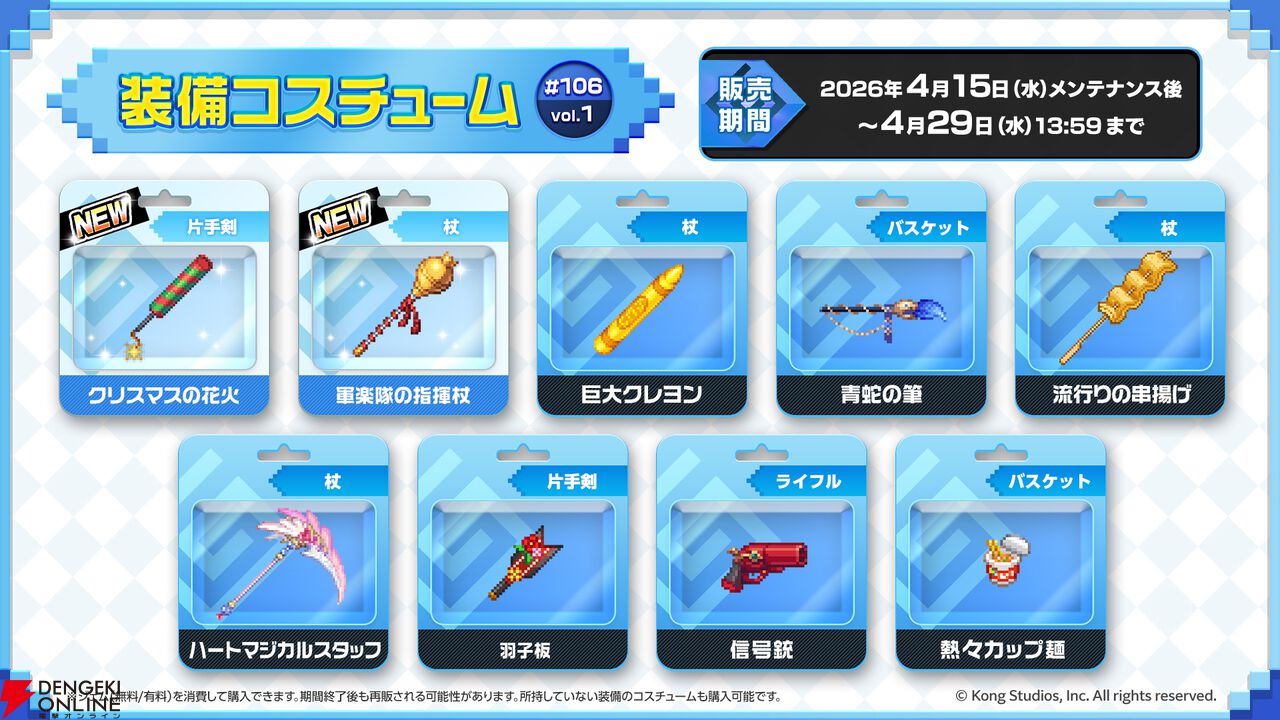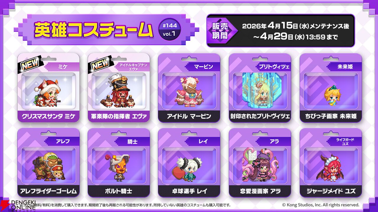 英雄および装備の新規コスチュームがショップに登場! 既存のコスチュームの一部とあわせて期間限定で販売します。この機会にぜひ英雄たちのおしゃれをお楽しみください!