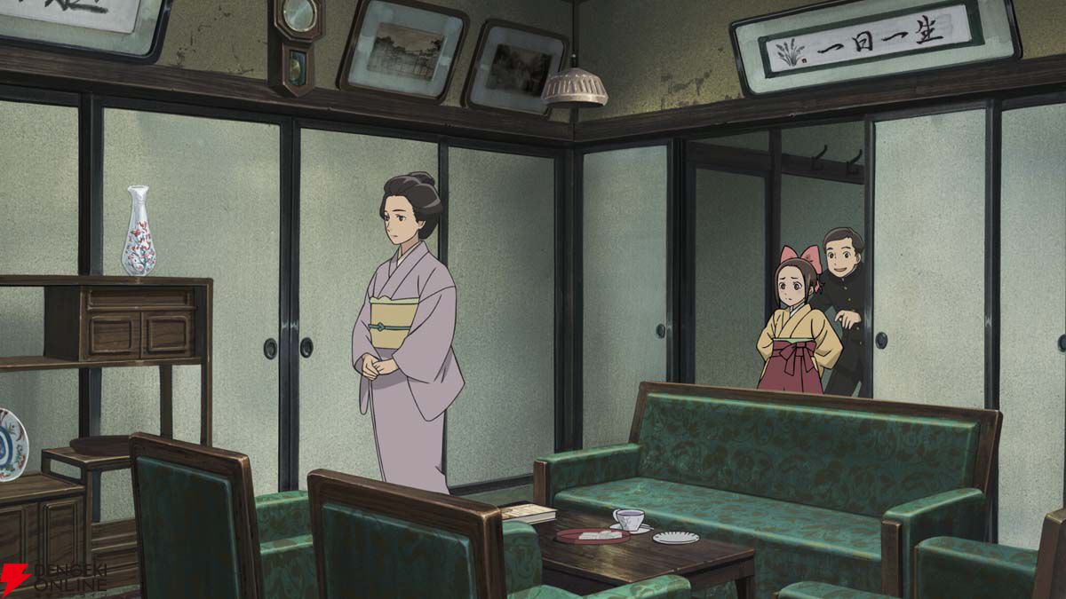 白土「継田家ですが、高田馬場の周辺と設定しました。明治の高田馬場は1910年(明治43年)に鉄道院山手線「高田馬場駅」が開業したばかりで、落合崖線沿いには金持ちの別邸などもある自然を残した邸宅街。家のモデルは文豪・夏目漱石が晩年に住んだ邸宅で、特に継田父がいる部屋は、門下生が出入りしたとされる漱石の書斎「漱石山房」などを参考にしています。しかし、和室に洋式の家具が配置された和洋折衷的なレイアウトにするため、細かい部分は複数の幕末、明治の建築を組み合わせたものになっております。」