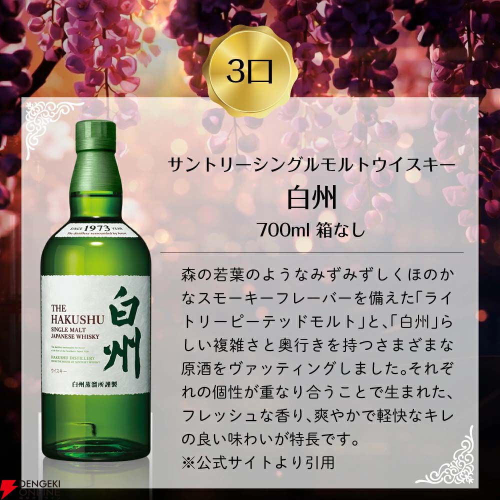 『豪華ウイスキーくじ』第26弾(100口限定)山崎12年、響JH、山崎NV、白州NV、ワイヤーワークス カデューロなどが当たる