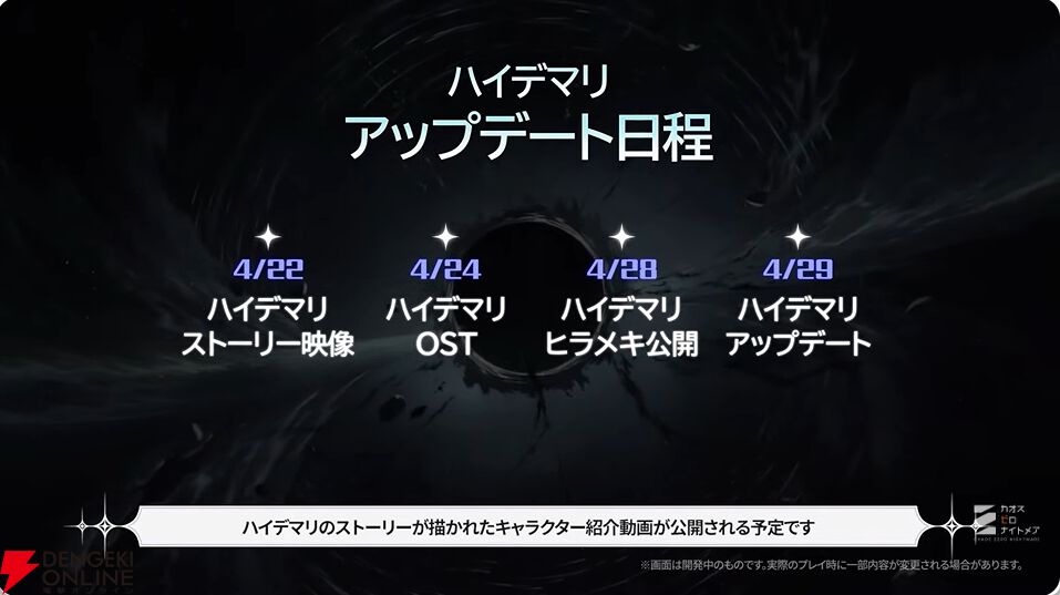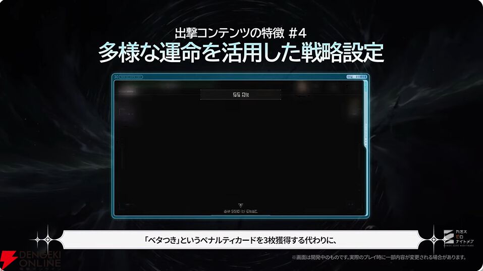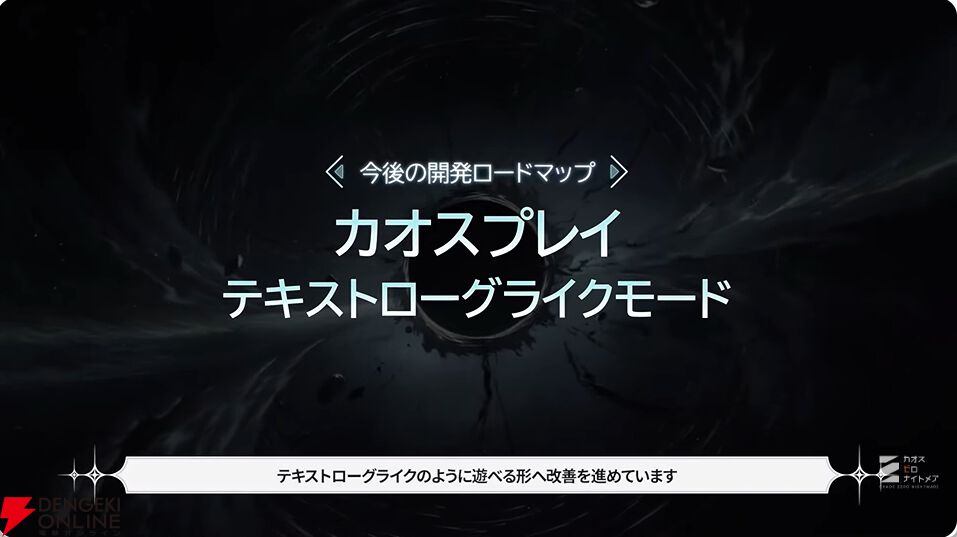 今後の新要素として、ストーリー改編アップデート(7月8日予定)、カオスプレイのテキストローグライクモード、マルチプレイモードについても言及がありました。