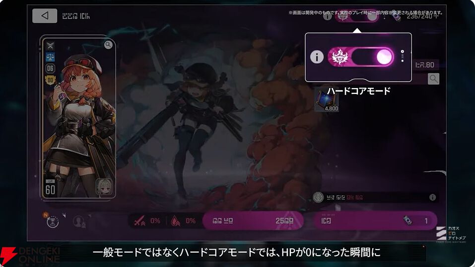 なお、ハードコアモードではHPがゼロになった瞬間に戦闘不能となって離脱する、ひりつく緊張感を味わえます。