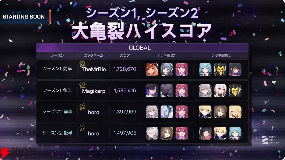 今後は前のシーズンで活躍したセーブデータを生かし、自分で作り上げたデッキを使って大亀裂に挑戦できるようになるとのこと。