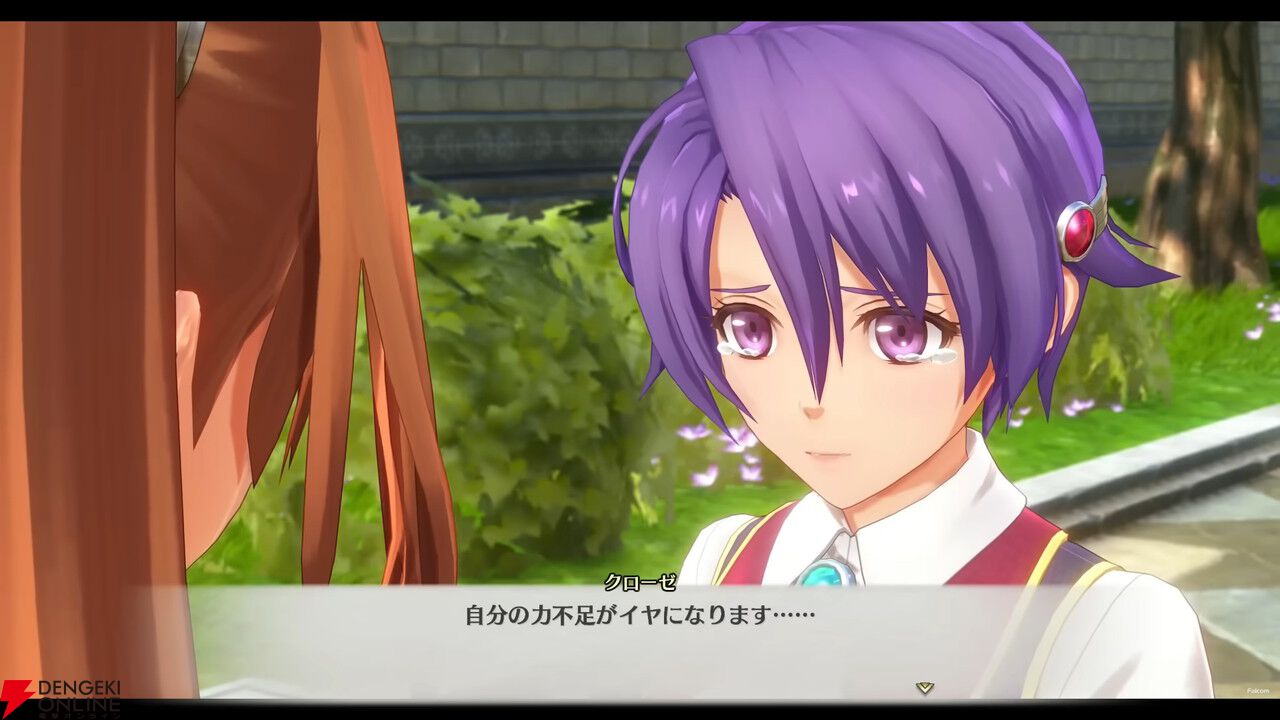 セリフ的に、第1章でエステルとクローゼが再会したシーンですね。女王生誕祭以来の再会で、エステルとヨシュアに悲しい別れがあったことは当然クローゼも把握しています。2人について何もしてあげられなかった無力感と、再会の喜び。そんないろいろな感情が混じり合い、クローゼは涙を流します。こういう美しいシーンが3Dで見られるとは、いい時代になったものです……。