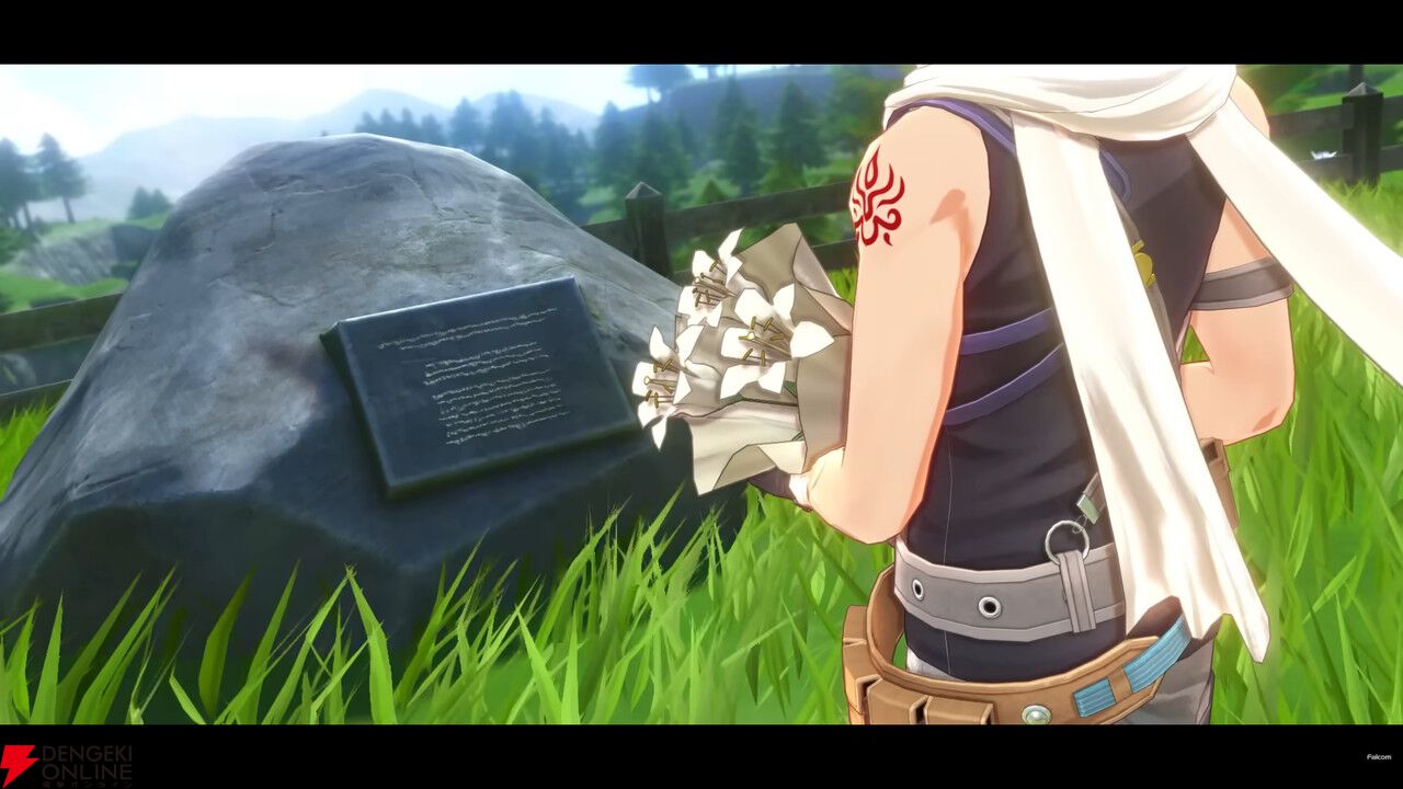 トレーラーのラストで挿入されたシーン。ヨシュアが故郷の旧・ハーメル村に墓参りに訪れた場面ですね。ハーメルの3D化は『閃の軌跡III』や『閃の軌跡IV』でも行われていましたが、最新のグラフィックとなるとよりキレイに映ります。ヨシュアが結社と対決する道を決意するシーンとしてもいい感じ。