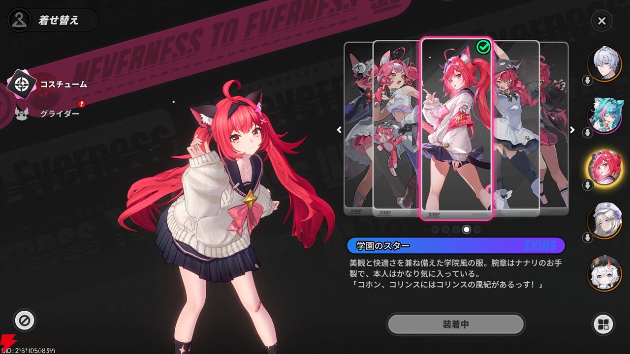 ヘテロシティでの生活をさらに楽しくしてくれるのが、ファッション要素です。キャラクターごとにさまざまなコスチュームが用意されており、見た目を変えられます。