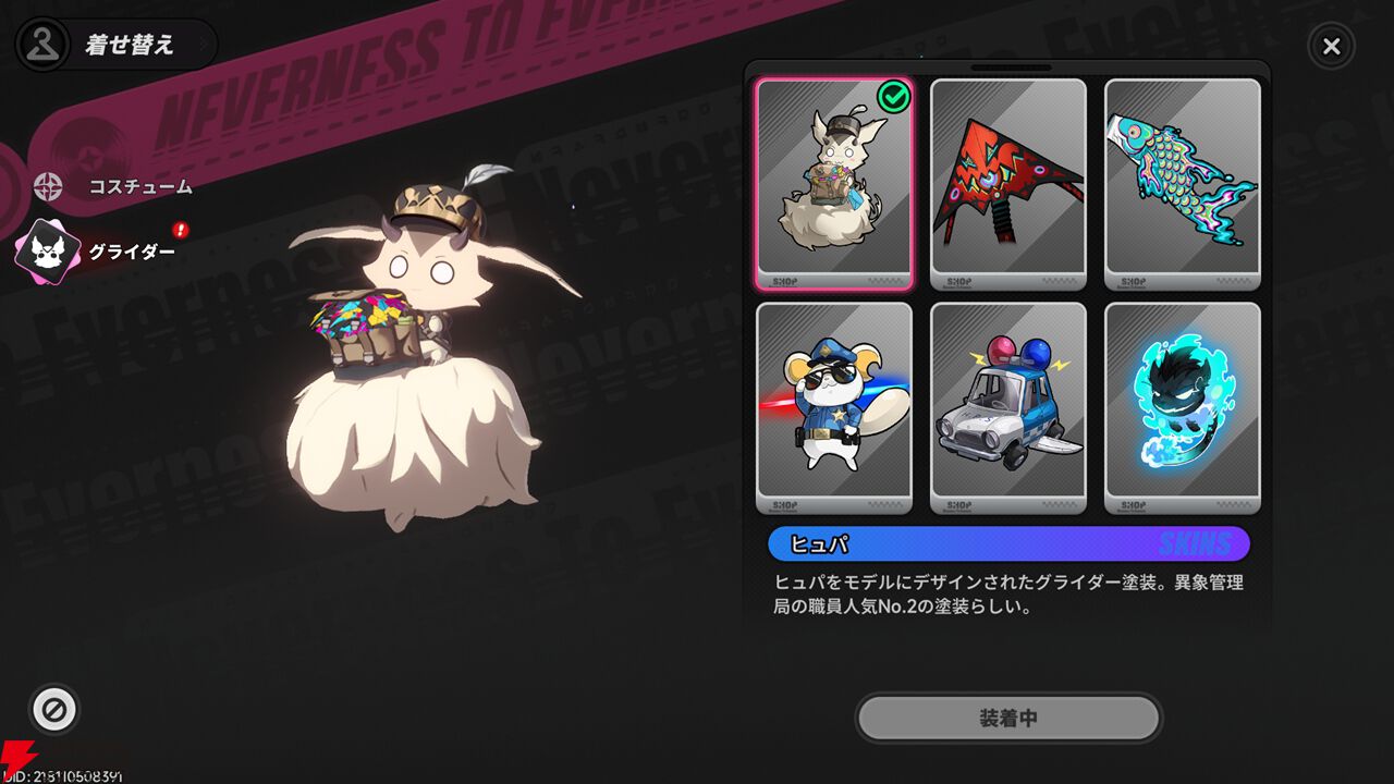 さらに、高所からの滑空時に使用するグライダーの外見も変更可能。