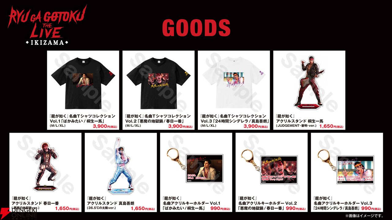 - 「龍が如く THE LIVE -IKIZAMA-」Tシャツ (M / L / XLサイズ)(税込価格 各3,900円)