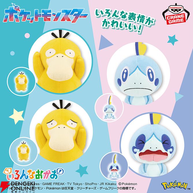 『ポケットモンスター』より、個性的で豊かな表情が魅力の《いろんなおかおぬいぐるみ》シリーズに、コダックとメッソンが仲間入りしました!