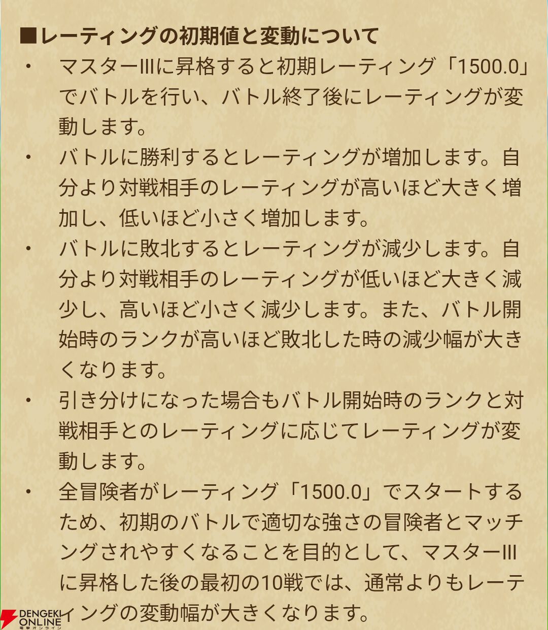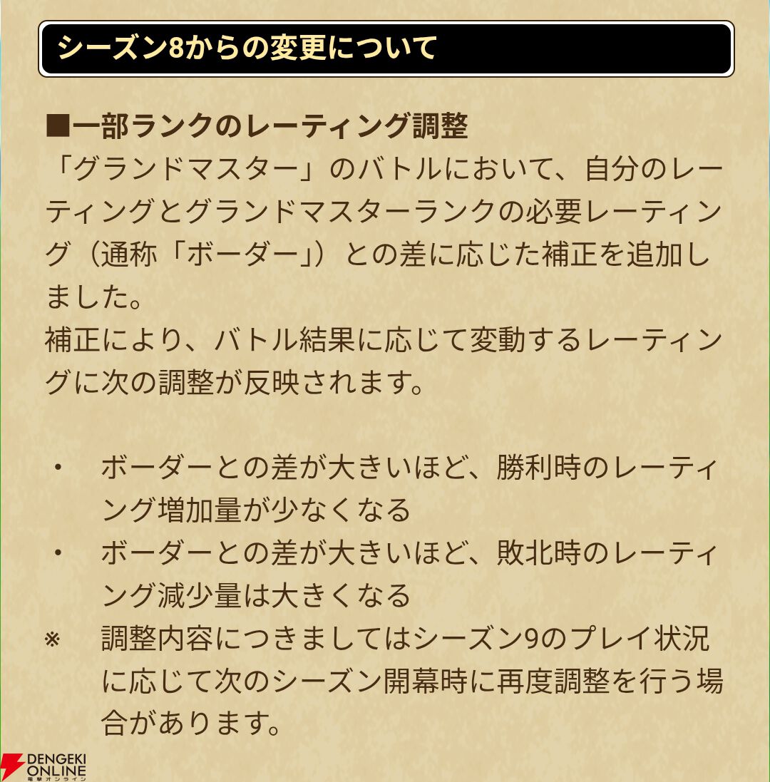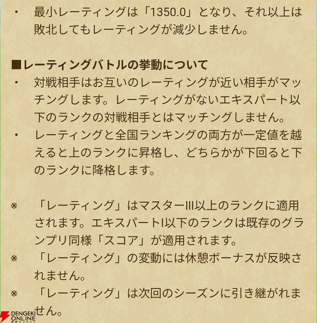 変更点①一部ランクのレーティング調整
