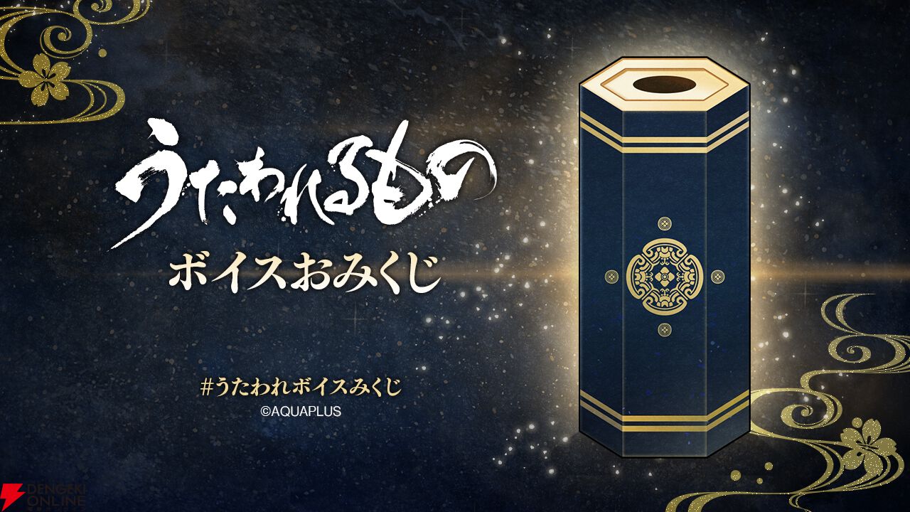 『うたわれるもの』シリーズのキャラクターがデザインされた、ボイス付きのおみくじ企画が実施されます。キャラクターの印象的な数々の台詞や、おみくじの結果を楽しみましょう。