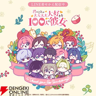 アニメ『君のことが大大大大大好きな100人の彼女』第2期EDver.のLINE着せかえをインクルーズの販売アカウントより配信開始! 第2期EDに登場するミニキャラを使用したかわいらしいデザインです。