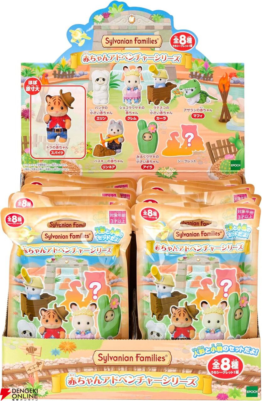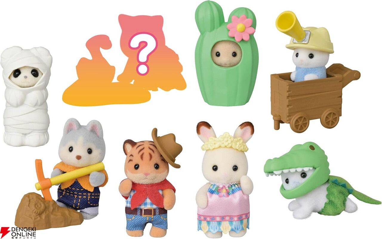 トラの赤ちゃん&カウボーイハット、ショコラウサギの赤ちゃん&ティアラなど全8種類、うちシークレット1種類のラインナップ!