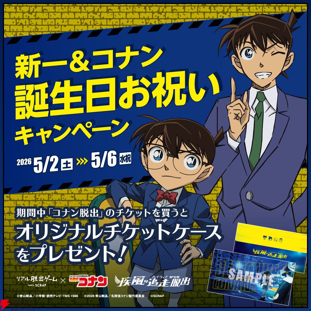 SCRAPは、大人気テレビアニメ『名探偵コナン』とコラボレーションしたリアル脱出ゲームの最新作『疾風の追走(ハイウェイ)からの脱出』を、2026年7月2日(木)より全国各地をはじめ、台湾など世界各地で開催すると発表しました。